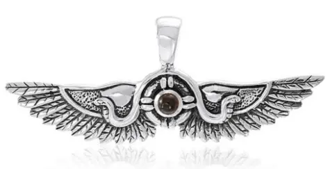 Horus, ein ägyptischer Hauptgott für Himmel und Licht. Dargestellt als Falke, symbolisiert mit seinen Flügeln seine einzigartige Stellung im Himmel. Seine ausgebreiteten Schwingen überragen den Träger und bieten Schutz vor äußeren Einflüssen. Zudem soll der kleine, in der Mitte eingelassene, Granat Edelstein zu einer Stärkung des Selbstbewusstsein beitragen. Höhe: 18 mm Breite: 46 mm Nettogewicht: 5 g Material: 925-Silber Qualität: Feinste Marken Qual. Nachbearbeitung: handpoliert